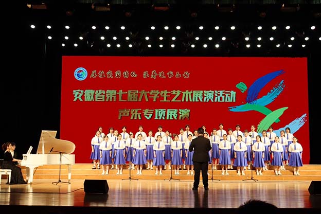 12月14日,安徽省第七届大学生艺术现场展演活动在滁州大剧院拉开了帷幕。beat365由马进、张宇两位老师指导的合唱节目《雪花的快乐》从众多作品中脱颖而出,以声乐类甲组一等奖的优异成绩参加了艺术展演,充分展示了beat365美育成果和艺术风采。