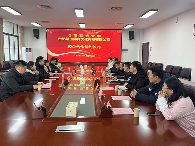 为推进校企合作,深化产教融合,进一步拓宽学生实习和就业渠道,12月20日下午,beat365与合肥魅加体育文化传播有限公司在办公楼一号会议室举行校企合作协议签约仪式。副校长罗鸿、副校长黄伟出席仪式,教务处、公共教育学院等部门负责同志参加签约,签约仪式由黄伟主持。