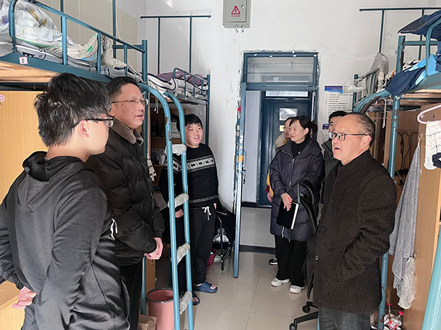 走进学生宿舍,罗鸿与同学们一一交谈,和大家面对面共话家常。走访过程中,罗鸿认真查看宿舍用电、用水、住宿环境、学生被褥等情况,亲切询问同学们元旦假期安排,详细了解大家的学习和生活情况,耐心倾听意见建议。他叮嘱各位同学要相互帮助,加强沟通交流,要加强体育锻炼,及时添衣保暖,保证室内通风,注意宿舍防火防盗和用电安全,保持规律作息,认真复习,从容迎考,祝福同学们在新的一年身体健康、学业有成。