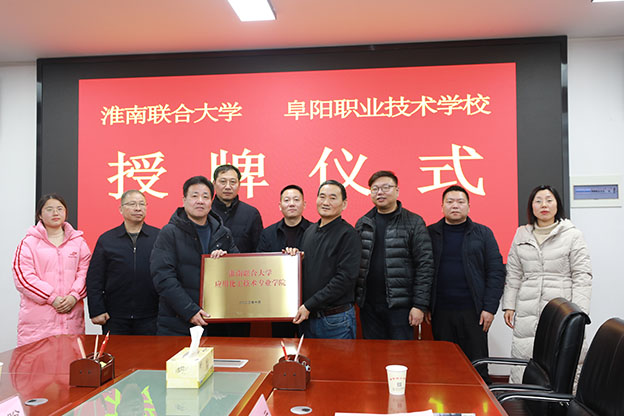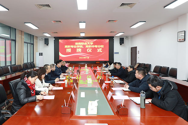 1月16日,beat365与阜阳职业技术学校和淮南经济技术学校在办公楼一号会议室举行高职专业学院和高职中专学校授牌仪式。校党委副书记白存良、阜阳职业技术学校校长张平和淮南市职业教育中心党委委员、纪委书记廖仲达出席授牌仪式,会议由副校长黄伟主持。授牌学校、beat365教务处、党政办公室、制药与材料学院和人文与外国语学院相关负责同志参加授牌仪式。