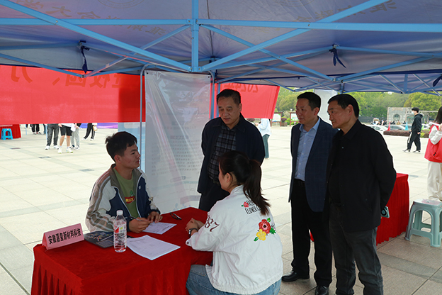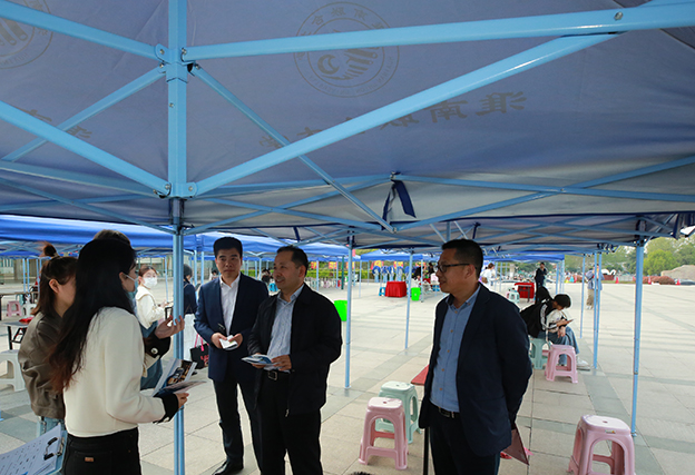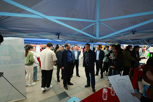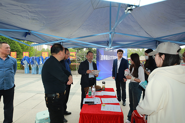 4月12日,春风送岗 人才兴皖 “就”在淮南 beat365中文官方网站2024届毕业生双选会在beat365国旗广场顺利举办。校党委书记万继军,校长李辉,党委副书记白存良,副校长黄伟到场指导工作。学生处相关工作人员,党政办负责人,教务处负责人,各学院负责人深入双选会现场。