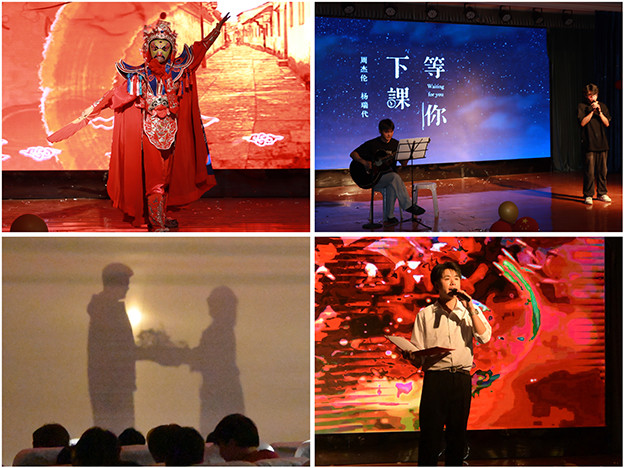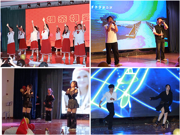 开场舞《Let Me Get Down》精湛的舞姿拉开了晚会的序幕,点燃了现场热烈的气氛。诗朗诵《不朽》忆战争岁月,抒爱国情怀,情感真挚,引人动容;歌曲《我想念》《你还要我怎样》以深情演唱将观众带入了诗意的青春岁月,沉浸在浪漫的旋律里;女团舞《Good Time》、拉丁舞《Burning》以自信的舞步传递勇于突破自我的信念,展现了同学们热情奔放、个性张扬的精神风貌。《川剧变脸》精湛的表演向现场师生展现了我国非物质文化遗产的艺术瑰宝,在震撼于变脸神秘莫测的同时,感受到中华传统文化的魅力,赢得阵阵喝彩,掀起全场高潮。吉他弹唱《等你下课》将时光定格在青涩的葱茏岁月里,光影剧《青春匆匆流》将记忆投影在宝贵的大学生活中。