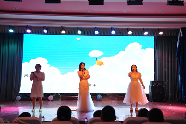 演出在激昂的开场乐声中拉开帷幕,他们以其独特的音乐风格和精湛的演奏技巧,迅速点燃了现场的气氛。在随后的节目中,各种艺术形式轮番上阵,展示了建筑与艺术学院师生的多才多艺。动感十足的舞蹈《Smart》,表达了舞者对艺术的热爱和追求。歌曲《不为谁而做的歌》和《光年之外》以优美的旋律和深情的演唱,打动了在场每一位观众的心。特别值得一提的是,武术表演《龙腾武韵》将中华武术的博大精深展现得淋漓尽致,每一个动作都充满了力量和美感。此外,朗诵节目《新时代新青年》则以激昂的语调,表达了新时代青年人的担当和使命。最后,由三位教师演唱的歌曲《小美满》尤为引人注目,这首歌曲不仅展现了教师的艺术才华,更是对即将离校实习的同学们寄予了深深的祝福和期望。