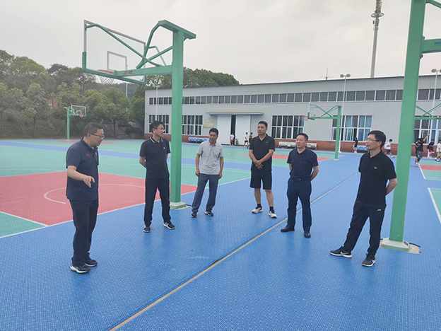 淮南师范学院体育学院院长阮宜杰、书记葛士顺热情接待了黄伟一行,并详细介绍了悬浮地板的性能、规格、型号以及价格等情况。黄伟一行实地参观了悬浮地板篮球场、排球场和网球场等。