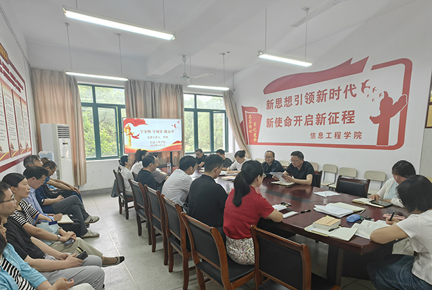 6月5日下午,信息工程学院召开党纪学习教育专题会。副校长罗鸿出席会议并上专题党课。学院党总支副书记盛蕾、院长方厚加及全体教职工参加会议,会议由盛蕾主持。