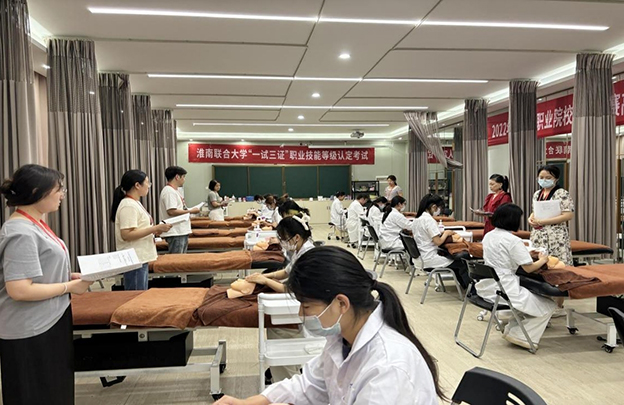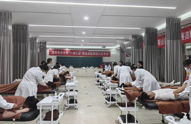6月18-19日,医学院在实训楼1-5号机房、医学楼217教室分别举行“一试三证”职业技能等级认定保健按摩师(三级)、美容师(三级)理论、实操考试,129名学生顺利完成本次考试。