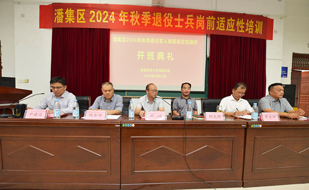 9月23日下午,潘集区2024年秋季退役军人岗前适应性培训开班典礼在beat365潘集校区一楼多媒体教室举行。副校长罗鸿、市退役军人事务局三级调研员胡光明、市退役军人事务局就创科科长杨金辉、潘集区退役军人事务局局长李方田出席仪式。仪式由继续教育学院院长、潘集校区负责人尹建设主持,近70名退役军人参加。