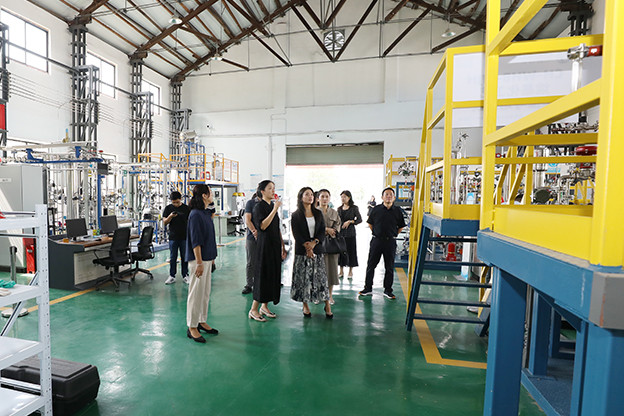 专家组一行实地走访了化工新材料产业学院、现代物流京东产业学院,听取了beat365化工新材料产业学院和现代物流京东产业学院建设的工作汇报。