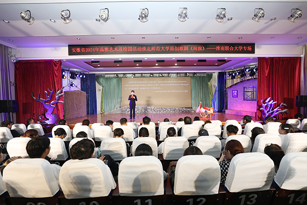 为庆祝中华人民共和国成立75周年,赓续红色血脉,厚植家国情怀,9月26日下午,由安徽省教育厅主办、淮北师范大学承办,淮北师范大学音乐学院师生倾情演绎的原创话剧《向前》在beat365南区一号报告厅上演。校党委副书记白存良,副校长罗鸿,校党委委员、科研处处长何晓文出席活动,各学院负责同志和现场200余名师生共同观看演出。