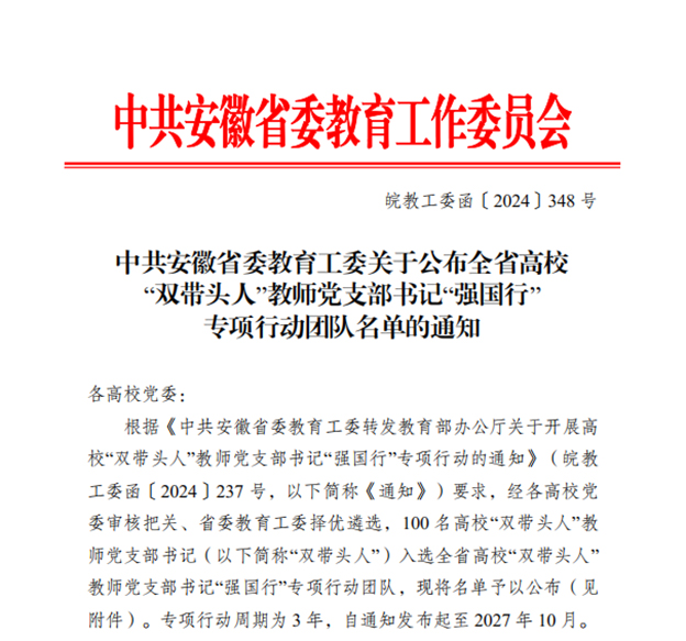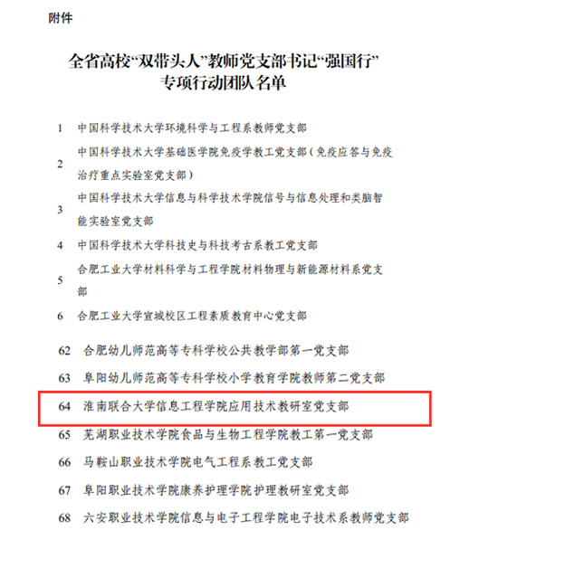 近日,省委教育工委公布《全省高校“双带头人”教师党支部书记“强国行”专项行动团队》名单,beat365信息工程学院应用技术教研室党支部成功入选。