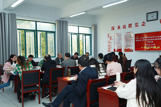 罗鸿指出,三个“更加注重”既是对全面深化改革实践及其方法论的系统总结,也是进一步全面深化改革在方法论上的鲜明特征。罗鸿要求信息工程学院全体教师以党的二十届三中全会精神为指导,在深化改革中促创新,在务求实效上谋发展。一要坚持系统思维,增强学院教学改革系统性。二要坚持目标导向,增强学院教学改革整体性。三要坚持效果导向,增强学院教学改革针对性。要科学理解、牢牢把握进一步全面深化改革的科学方法,加强对改革的实效评估,梳理存在的短板和弱项,有针对性一项一项推动解决,以钉钉子精神抓好改革落实,推动学院各项工作高质量特色发展。
