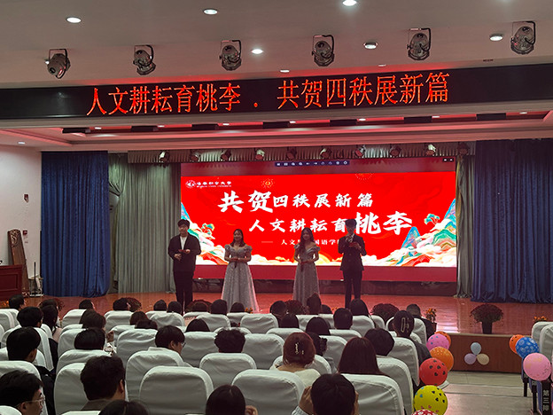11月13日下午,人文与外国语学院在南一报告厅举办“人文耕耘育桃李,共贺四秩展新篇”建校40周年文艺展演。副校长邓琪,副校长黄伟,学生处、各学院负责同志及人文与外国语学院师生共同观看演出。