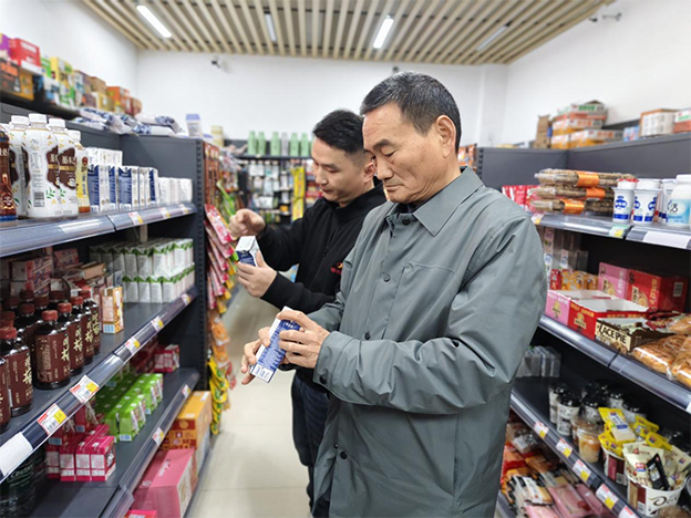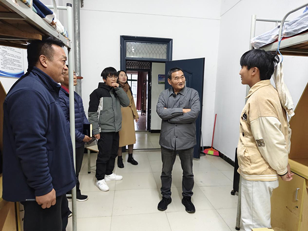 白存良一行实地走访了餐厅、超市、学生宿舍等,查看了宿舍的消防设施、用电安全以及卫生状况。他详细询问了食堂食材的来源、存储、加工及卫生状况,认真检查了商品的保质期和进货渠道,亲切了解了学生们的学习和生活情况,鼓励大家要合理安排时间,劳逸结合。