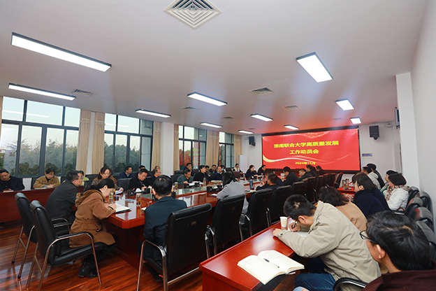 许德寿深入分析了学校发展的“时”与“势”,紧密结合学习贯彻习近平总书记最新重要讲话精神,用三个“力”寄语干部职工和学校工作。一是保持定力,始终锚定发展目标。牢牢把握职业教育发展风口期和beat365中文官方网站发展机遇期,继续坚持走高质量、内涵式发展道路,锚定加快建成地方技能型高水平大学、建成职业本科的发展目标,一张蓝图绘到底、干到底。二是要激发活力,提振干事创业的精气神。以高质量发展协调推进领导小组的建设为起点和契机,破除体制机制障碍,改革创新、激发活力;同时坚持以人为本、服务为先,不断提升服务质量,加快基础设施建设,提升广大师生服务感知。三是要形成合力,营造凝心聚力谋发展的良好氛围。把“知行合一”的思想贯穿于具体的实践当中,把“联大未来有我在”的情怀落实到具体的工作中,?哿ν?摹⒐泊次蠢础?/span>