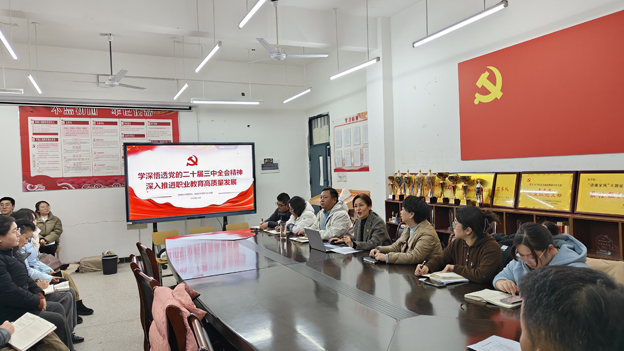 孙娟强调,党的二十届三中全会是在全面建设社会主义现代化国家、向第二个百年奋斗目标进军的关键时刻召开的一次十分重要的会议。全会审议通过的《中共中央关于进一步全面深化改革、推进中国式现代化的决定》,为我们进一步全面深化改革、推进中国式现代化指明了方向、明确了路径。要领会精神,做到学深悟透、入脑入心,落实国家职业教育发展新要求,把深入学习贯彻党的二十届三中全会精神和9月份全国教育大会习近平总书记重要讲话精神紧密结合起来,推动全会精神在职业教育领域落地生根、开花结果。