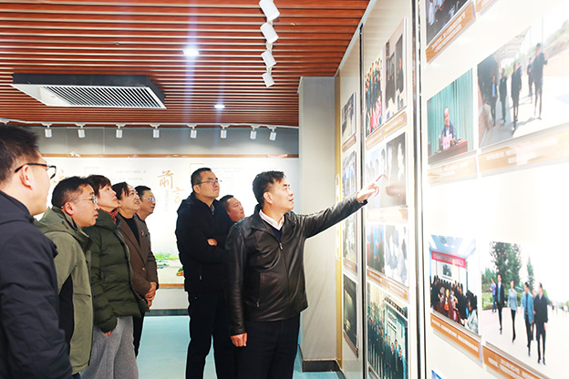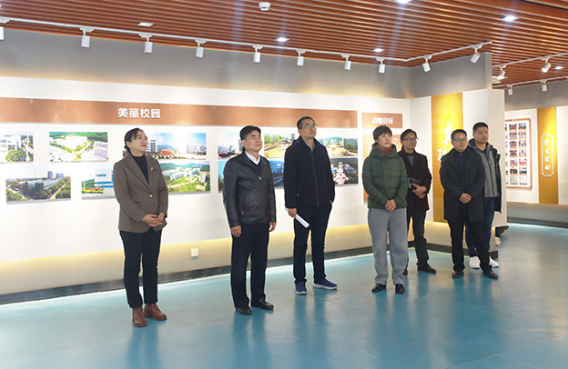 许德寿一行沿着编年脉络,逐个板块细致参观,从校史沿革、办学传统、事业发展等多个方面,全方位了解学校四十年的发展建设历程及取得的主要历史成就,感佩一代代联大人接续奋斗的精神。