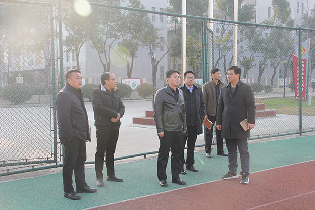 许德寿首先考察了潘集工程技术中等专业学校的校园环境及基础设施建设情况,详细查看了教学楼、运动场等教学区域,对学校的整体布局和校园环境给予肯定。