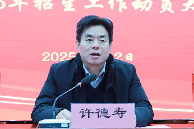 许德寿在讲话时充分肯定了学校2024年招生工作,对2025年招生工作提出了五点要求。 一是要加强招生宣传,提高学校知名度;二是要优化招生政策,吸引优秀生源;三是要加强数据分析,提高招生工作效率;四是要强化服务意识,提升学生满意度;五是要加强团队建设,增强工作能力素质。