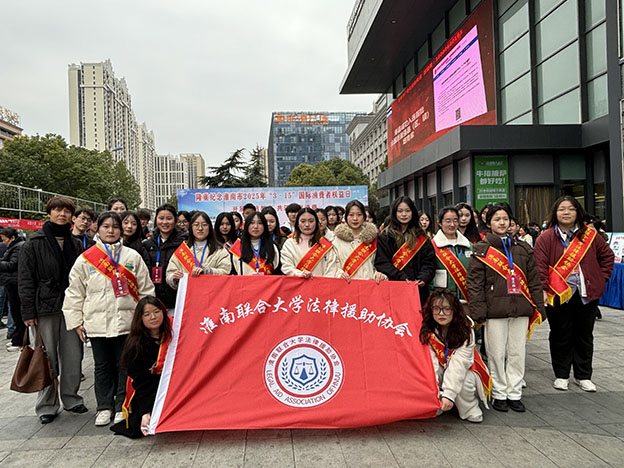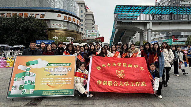 探索法律事务专业课程思政教育的“第二课堂”,3月15日下午,beat365人文与外国语学院法律事务专业学生、淮南市法律援助中心及“beat365中文官方网站法律援助协会”的社团成员共60余人参加了淮南市人民政府在田家庵区新世界休闲生活广场主办的2025年度纪念“3.15国际消费者权益日”大型户外宣传活动。活动由副校长邓琪带队,人文与外国语学院相关负责老师和法律援助中心工作人员参加了本次活动。