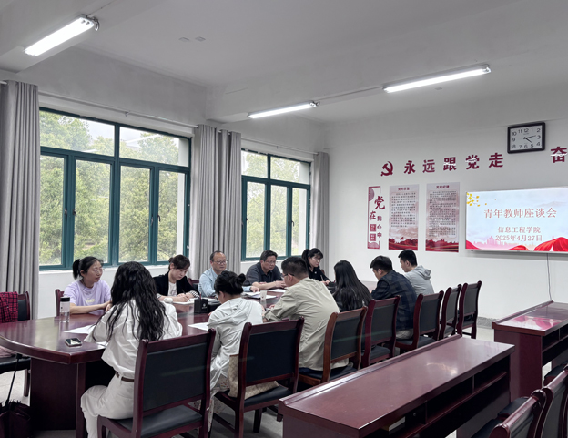 为倾听青年教师心声,助力青年人才成长,推动深入贯彻中央八项规定精神学习教育走深走实,4月27日下午,信息工程学院在学院党员活动室召开青年教师座谈会。副校长罗鸿出席会议。学院党政负责人以及青年教师代表参加会议。