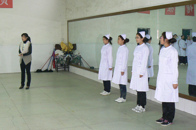 如何开展好医学类专业学生的职业素质训练?自年初起,医学系和实训中心多次召开教师座谈会和走访用人单位,以确立实训目标,筛选实训内容。该项实训是以专业岗位群所必须具备的基本技能和基本素质训练为平台,以提升综合职业素质为主要目的。训练内容为“电子元件的认识和组装”、“电脑维修和组网”、“礼仪和形体训练”三个方面。为了使训练内容完全符合岗位要求,特从我市朝阳医院聘请护理礼仪与形体训练指导教师对学生进行训练,实现学校培养与岗位需要全面对接。