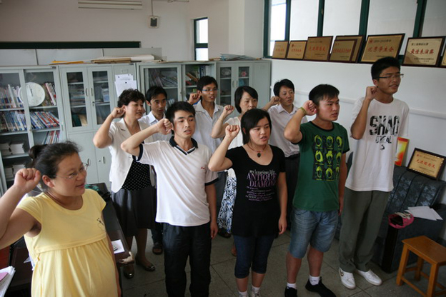 我系于7月1日上午召开了党员发展支部大会。会议由建工系书记廖美华同志主持,此次会议分三个议程:一、由四位发展对象宣读各自的入党志愿和个人的情况介绍,紧接着由培养人对四位发展对象在考察期里的表现进行陈述;二、由支委会成员对四位发展对象进行票决;三、由预备党员表达入党的决心,最后新党员在高红霞老师的带领下进行入党宣誓。