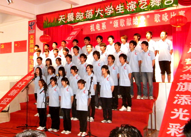 为庆祝中国共产党建党九十周年,机电系“颂歌献给党”歌咏比赛于