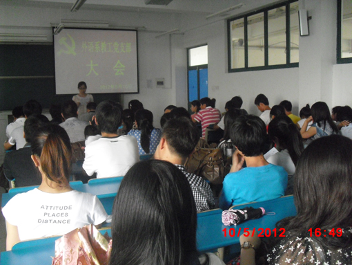 5月10日下午,外语系教工党支部大会在w306教室如期召开。校党委委员、组织人事部部长白存良应邀参会并作党性教育讲座,系党总支书记及全体教工党员、入党积极分子和思想进步青年近80人参加会议,大会由系教工党支部书记主持。