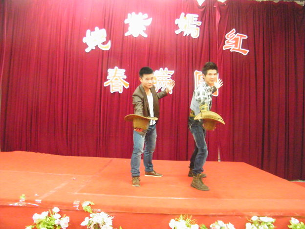 外语学子在清新悦耳、优美动听的乐曲声中翩翩起舞,象征着娇艳可爱的春花吐蕊绽放。热情奔放的开场舞《大地飞歌》,深情款款的男女对唱《我愿意》,温柔甜美的女生独唱《because of you》,婀娜多姿的维族舞蹈《西域之春》掀起了现场一个又一个高潮。黄梅戏《夫妻双双把家还》清脆婉约,余韵袅袅;英文歌曲《爱你在心口难开》激情燃烧,极具张力;江南舞蹈《春江花月夜》、《太湖美》灵动柔美,轻盈曼妙;方言朗诵《再别康桥》幽默传神,妙不可言;小品《偶遇》及豫剧反串表演《亲家母你坐下》更是出神入化,妙趣横生,让观众捧腹大笑,带给观众极大的乐趣和久久的回味,全场气氛不断升温。09级毕业生的一首《Melody》传递了他们对母校、老师的深切祝福和留恋。一首气韵非凡的男生独唱《越来越好》,唱出了外语学子的心声,表达了外语学子对学校的美好祝愿,歌舞犹如温暖春风,拂过每一位在座者的心房,为演出画上了圆满的句点。