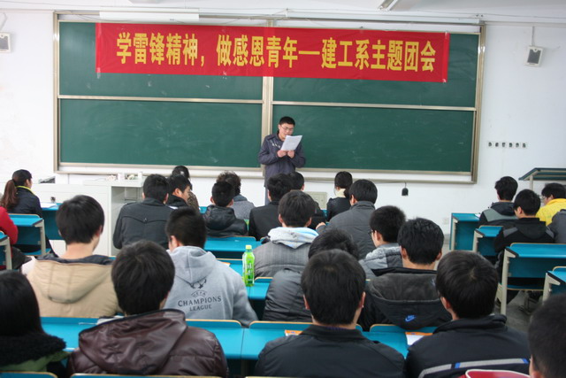 三月是一个春光明媚、生机勃勃的季节,更是一个讲文明、树新风,让雷锋精神吹遍校园每一个角落的季节。3月16下午,建工系开展了“学习雷锋精神 做感恩青年”的主题团会活动。