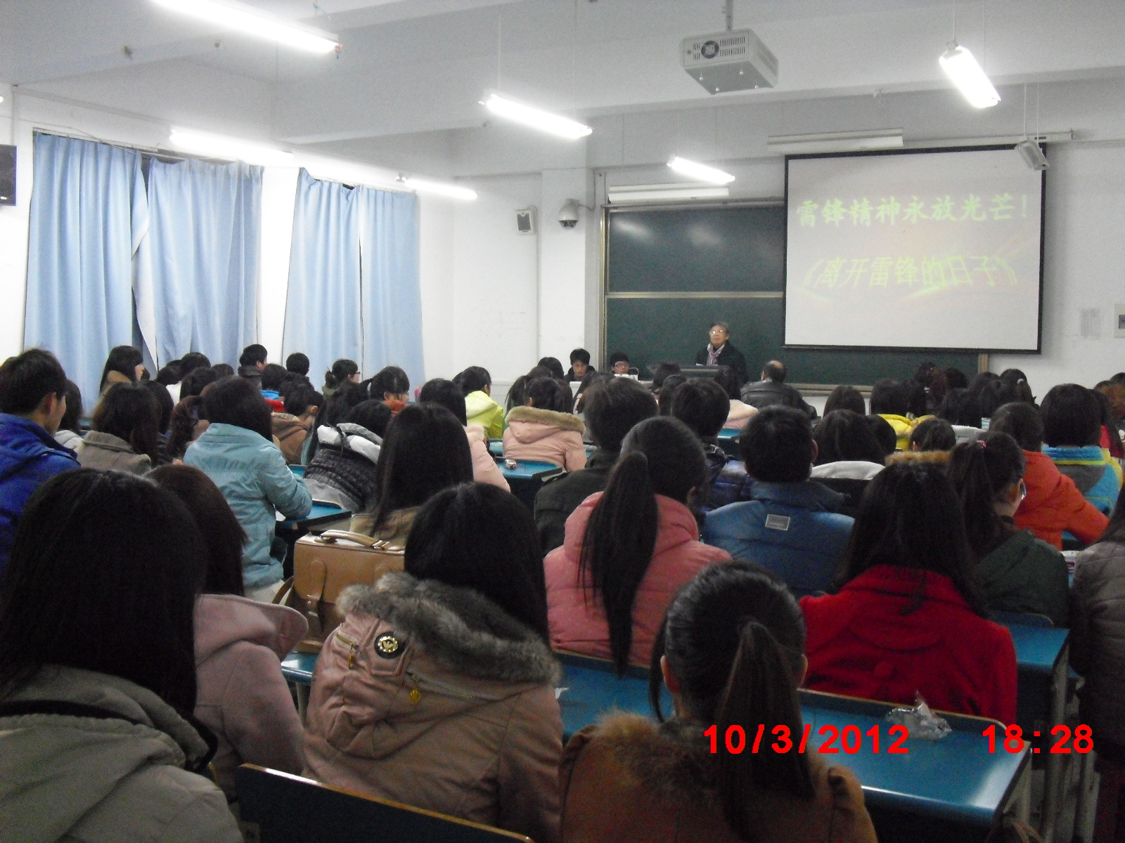 活动当天,我们很荣幸地邀请到了校关心下一代工作委员会的老同志为同学们介绍雷锋的生平事迹,与同学们一起分享了她对雷锋精神的独到见解,并强调地指出雷锋精神就是锐意进取、自强不息的创新精神,雷锋精神就是艰苦奋斗、勤俭节约的创业精神,这对同学们以后的学习、生活和工作具有重要的指导意义。