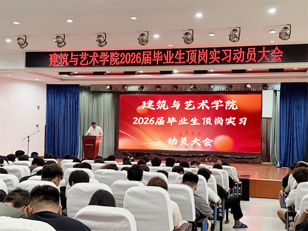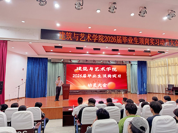 6月16日下午,建筑与艺术学院在南一报告厅召开2026届毕业生岗位实习动员大会。学院党总支书记陈磊、院长唐文锋、党总支副书记甄诚出席会议并作动员讲话。各专业教研室主任、实习指导老师、毕业班辅导员及全体2026届毕业生参加会议。